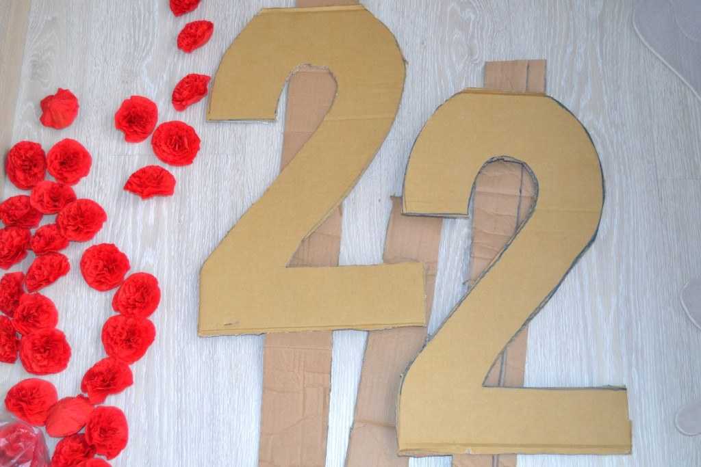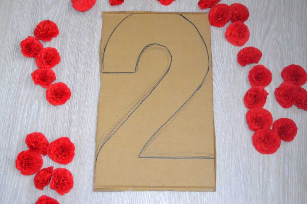 Как сделать своими руками знак из розочек на примере шаблона цифры 2