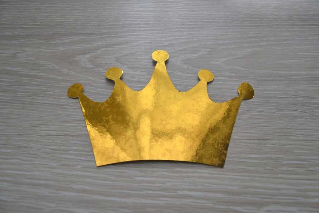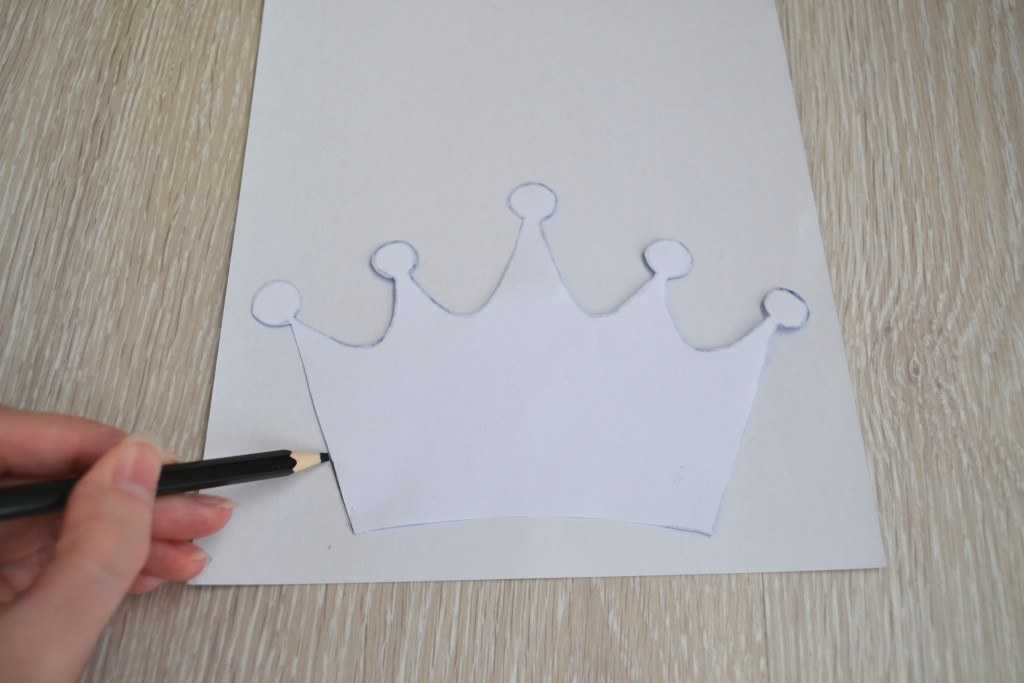 Также можно сделать дополнительный декор цифры в виде короны. Для этого печатаем трафарет на листе бумаги или же рисуем его. Вырезаем заготовку и обводим ее на голографическом картоне.