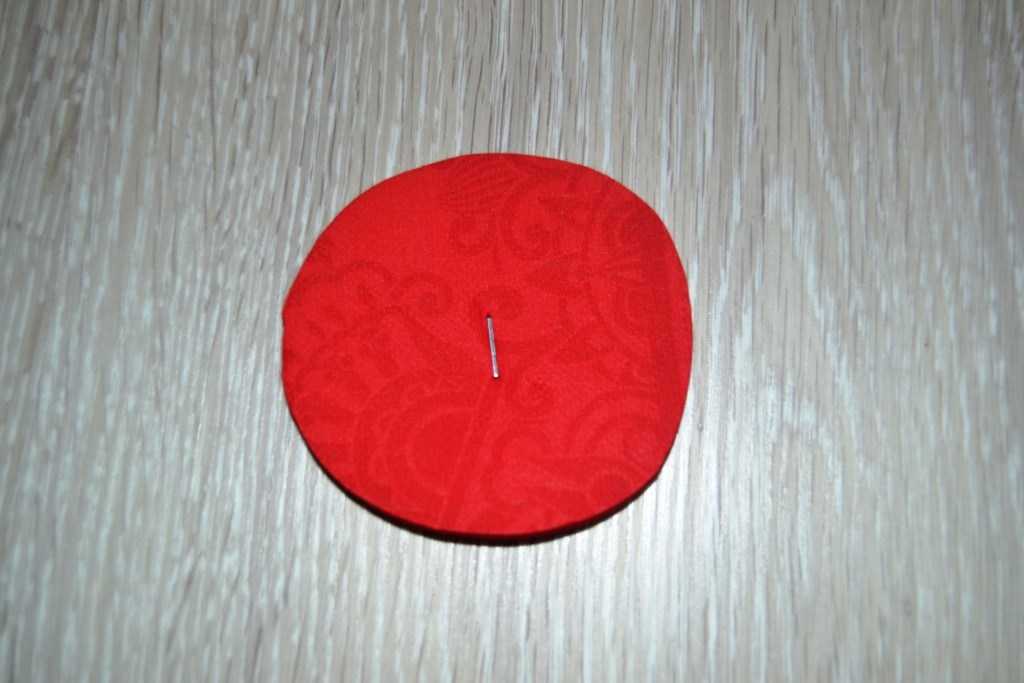 - Вырежьте окружность диаметром 2,5-3 см. Размеры цветов можно увеличивать, но следует ориентироваться на ширину фигурки, чтобы заготовки можно было разместить ровными рядами, но делать это необязательно.