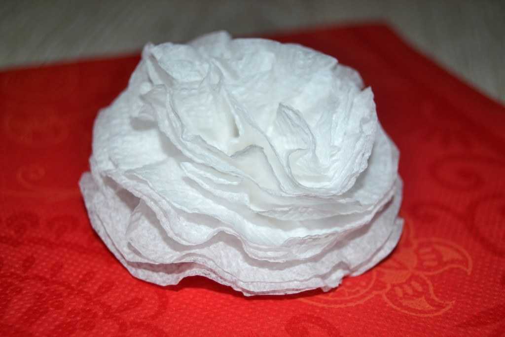 - Возьмите салфетки и сложите в несколько раз. Чем больше слоёв, тем пушистее будет бутон.