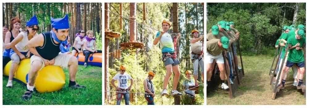 Конечно, главным времяпрепровождением станут разнообразные конкурсы на природе, включающие противоборство двух команд: прыжки в мешках, перетягивание каната, импровизированная рыбалка, ориентировка на местности и многое другое. Идеально, если поблизости будет и поле, и лес, и водоем. В завершении соревнования участников должно ждать вкусное меню для хищников и травоядных, горячительные напитки и песни под гитару у костра.