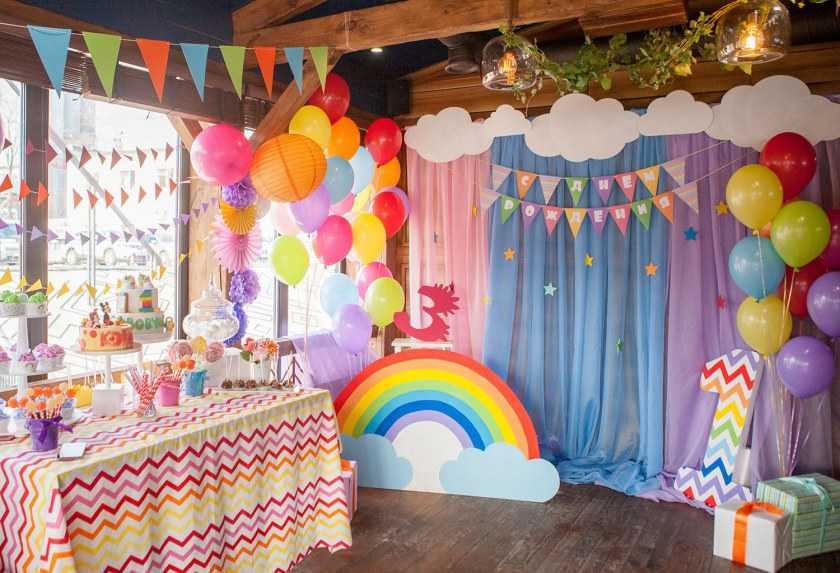 - Можно задекорировать получившуюся зону дополнительными элементами: объемными контрастными бумажными звездами, гирляндой, поставить по бокам связки воздушных шариков.