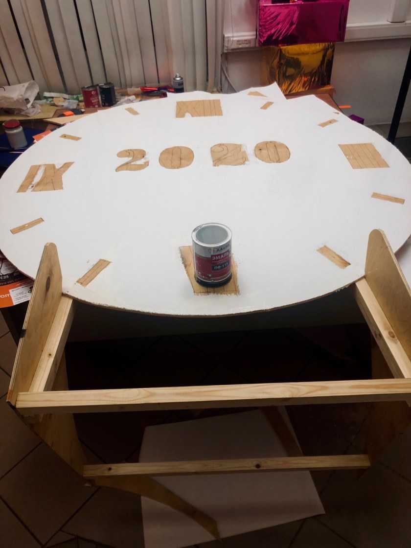 3. Каркас фотозоны из фанерного щита. Это достаточно дешевый и доступный материал, он легко подвергается обработке, и достаточно прочный для неоднократного использования. Из фанерного щита с помощью лобзика можно вырезать и фигурные элементы.