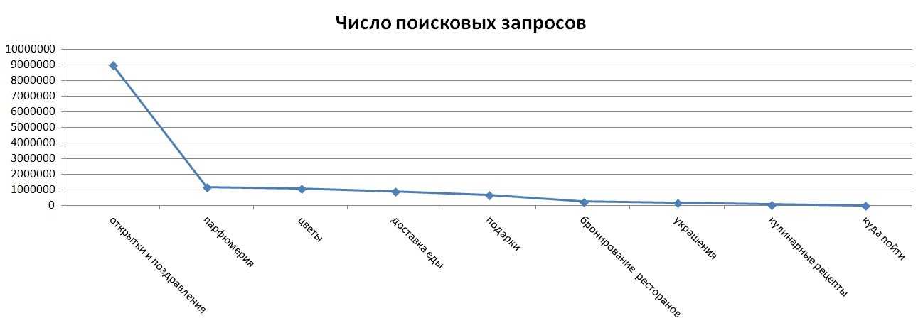 С телефонов потребители чаще всего ищут «поздравления», а самые редкие запросы – «драгоценности» и «доставка еды».