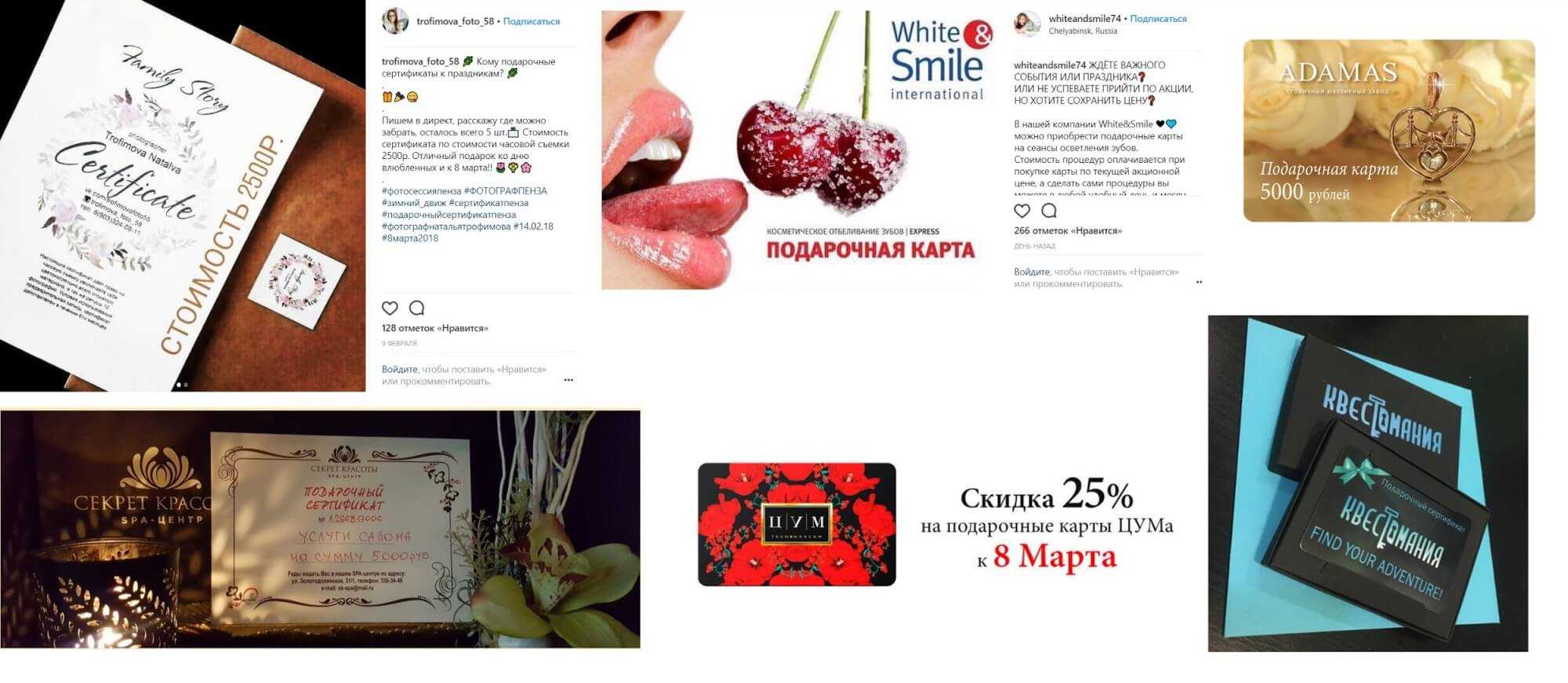 Примеры подарочных сертификатов