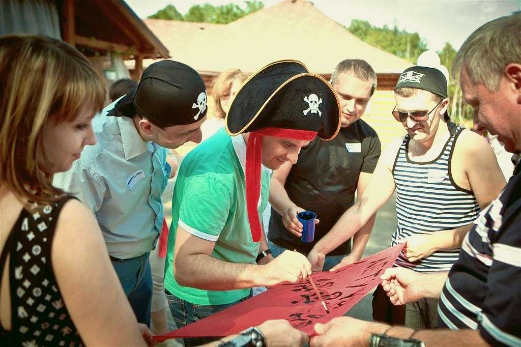 В теплое время года пиратскую вечеринку можно провести и на природе, в идеале – на берегу реки или озера, или моря, в зависимости от региона проживания празднующих. Природные декорации можно немного дополнить соответствующей пиратско-корабельной атрибутикой. Квест, связанный с поиском клада, в условиях «дикой» природы пройдет еще интереснее, ведь буквально под каждой веткой может быть спрятан ключ или подсказка.