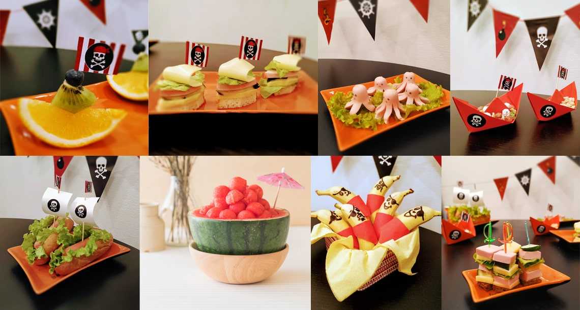 Поэтому, продумывая угощения для пиратского стола, остановите свой выбор на легких закусках, бутербродах, фруктовых канапе. А чтобы пиратский обед соответствовал событию, вот несколько советов, как превратить простые блюда в тематические: