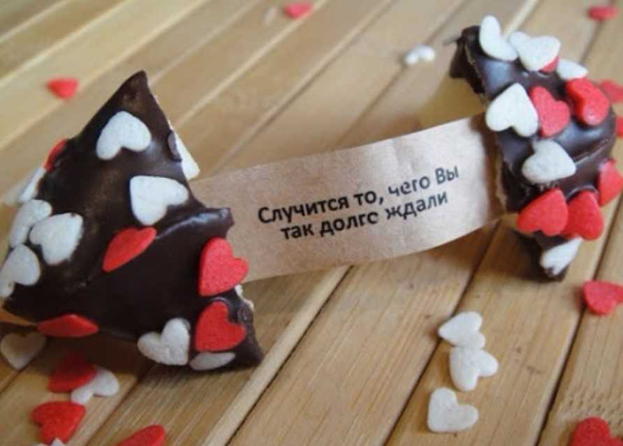 Прежде чем съесть лакомство, нужно разломить печенье на две части — внутри будет заветная бумажка, которая и расскажет тайну вашего будущего или поможет принять решение.