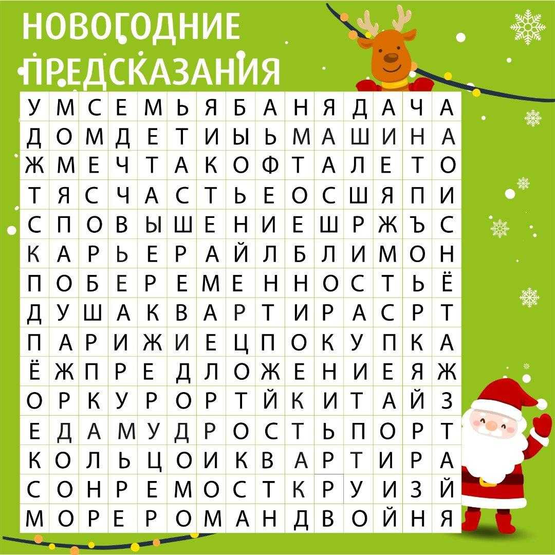 Прекрасным вариантом коротких и смешных новогодних предсказаний будет гадание по песням. Ведущий должен перечислять названия песен, а гость должен называть номер строки. Перед этим гость должен произнести фразу — «В будущем году меня ожидает…» и дальше последует строка из песни. Например, «Миллион, миллион, миллион алых роз» или «Я свободен, словно птица в небесах». Главное закончить мысль, которая заложена в названной строчке.