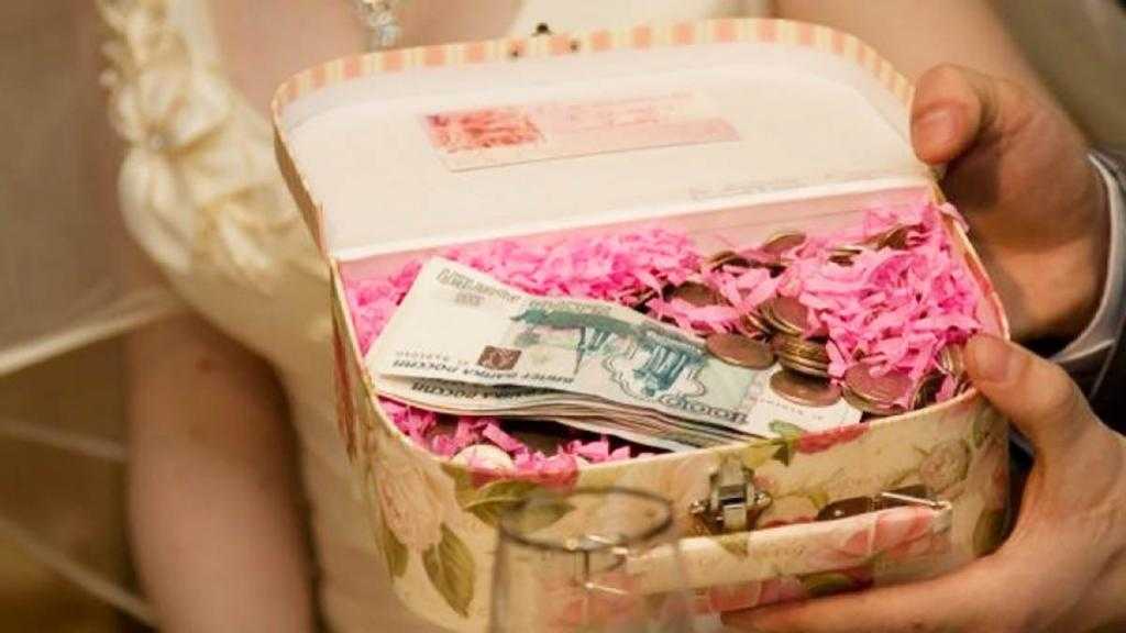 - Креативно может быть обыграна тема подарка денег от «мафии». Группа людей в строгих черных костюмах и очках входит в зал с кейсом на кодовых замках и, открыв его, передает молодым денежные купюры и «наркотики» – пакетики с мукой или сахарной пудрой.