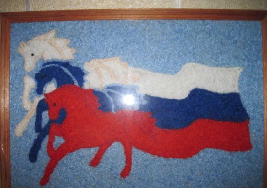 - Останется собрать поделку. На лист картона наклейте несколько фотографий, получившийся букет гвоздик, надписи, вырезанные из газет или распечатанные из интернета. Украсьте поделку декором по своему вкусу.