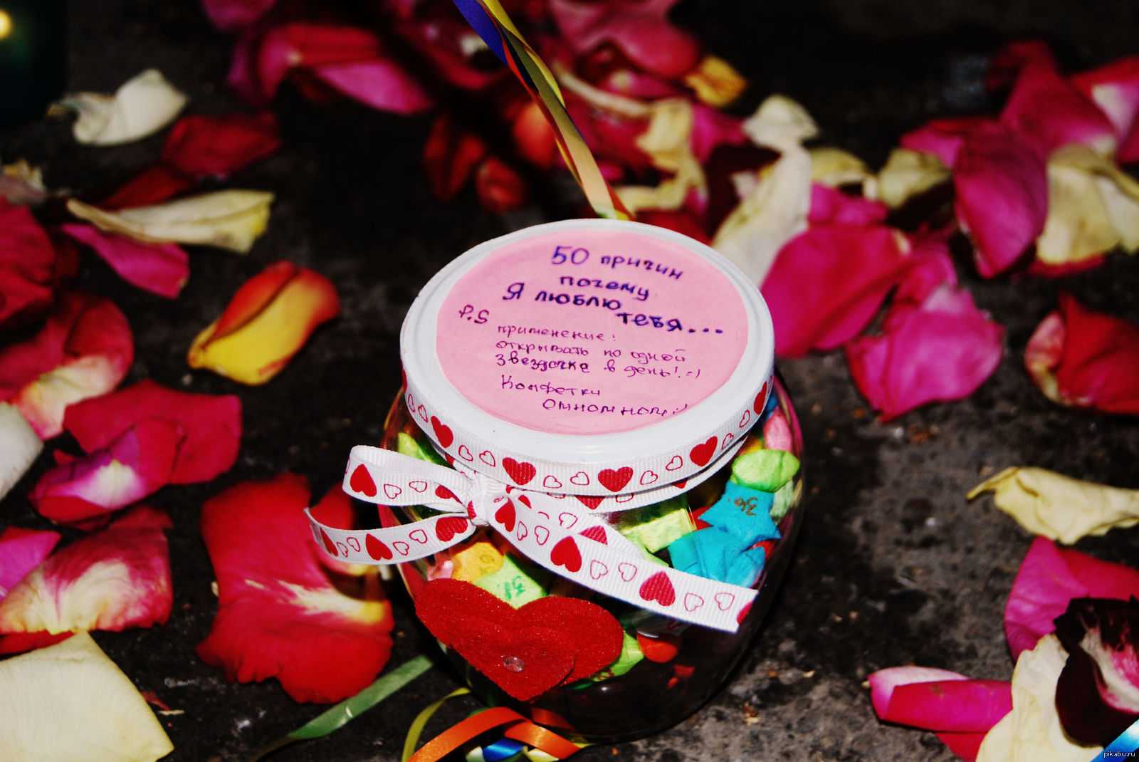Соберите вместе в одной банке его любимые сладости. Обвяжите баночку ленточкой, также можете добавить карточку с милой надписью.