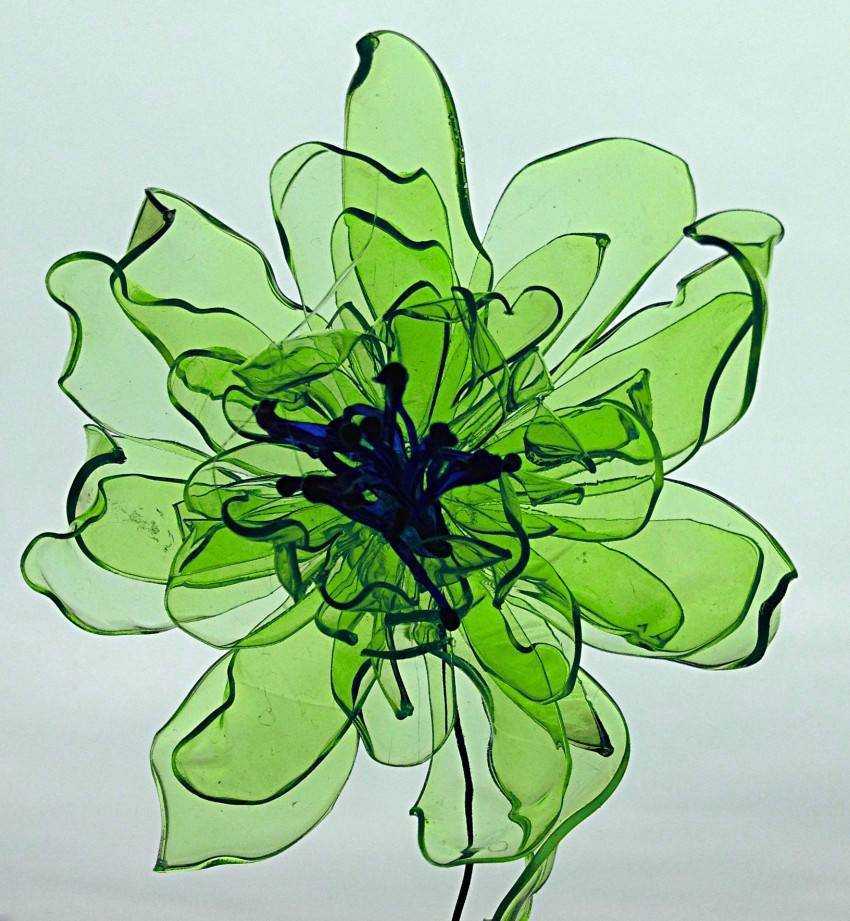 Как понимаете, при такой технологии остается много верхушек от бутылок (половина третьей бутылки). Их можно использовать делая другие поделки из пластиковых бутылок: цветы, более практичные вещи для хозяйства.