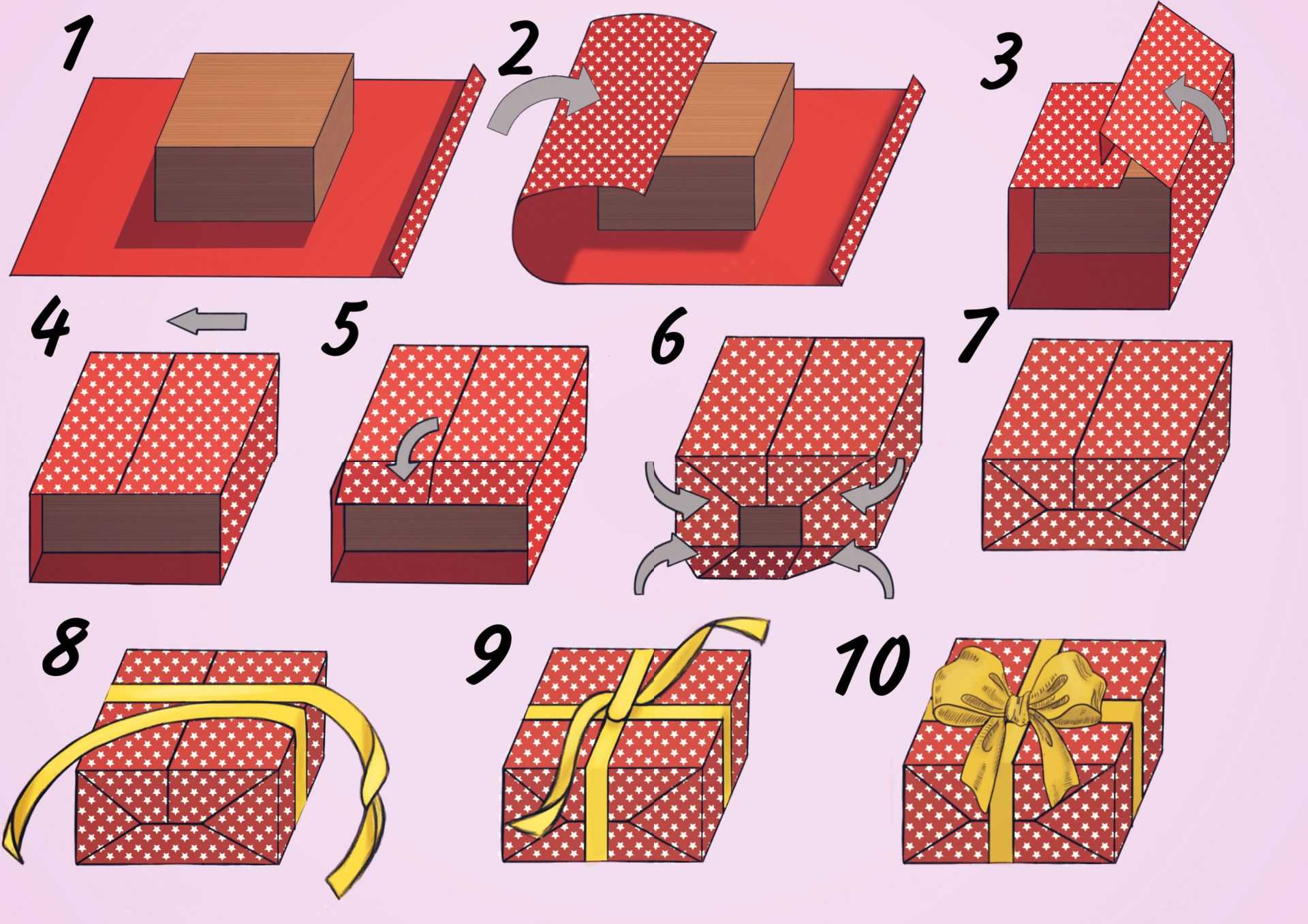 Как упаковать подарок в оберточную бумагу: схема и инструкция