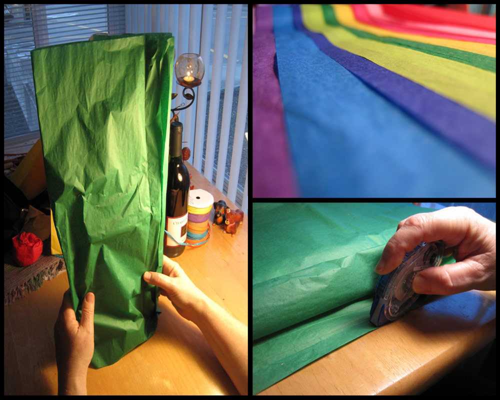 - Лишний упаковочный материал убираем и закрепляем края скотчем внахлест
