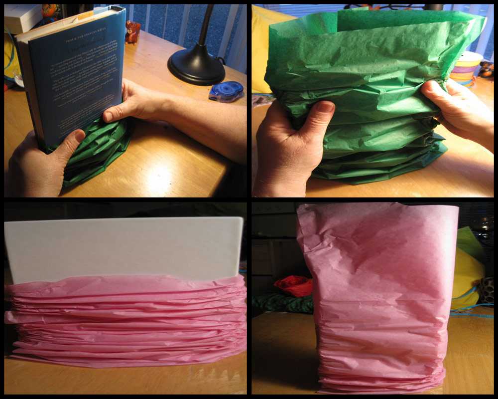 Чтобы упаковка не выглядела пресно – украсьте ее поделками из этой же папиросной бумаги, например, розами: