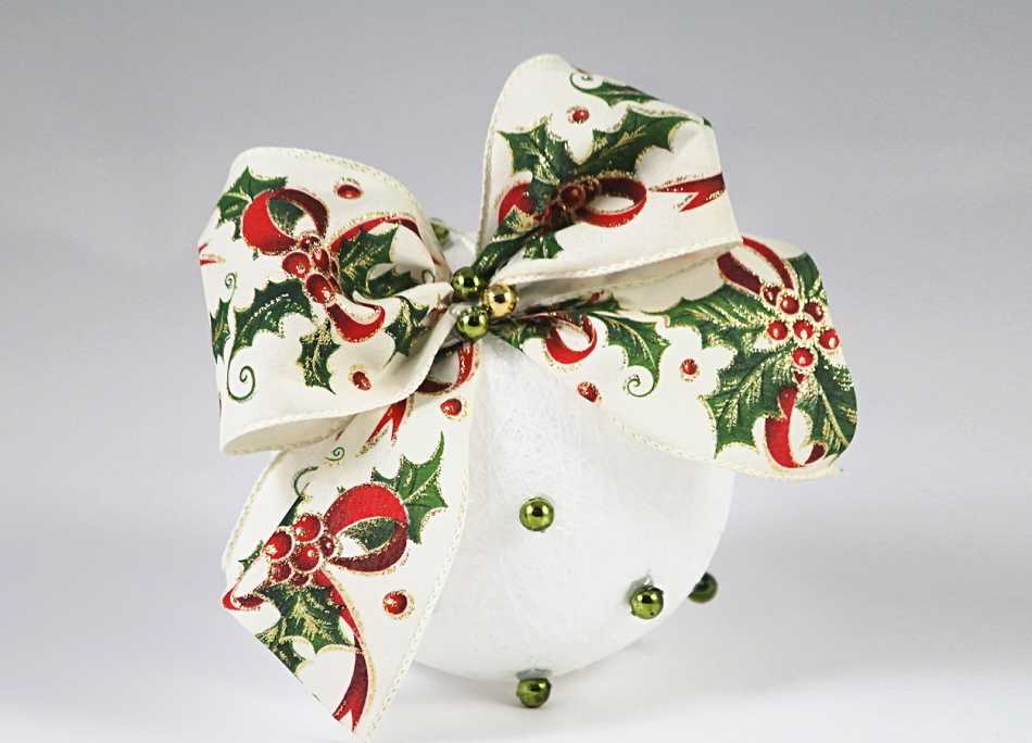 - Точно так же аккуратно вставляется крепление обратно. Чтобы шарик получился более нарядным, рекомендуется присоединить к нему ленточку, которая и удержит игрушку на елке.