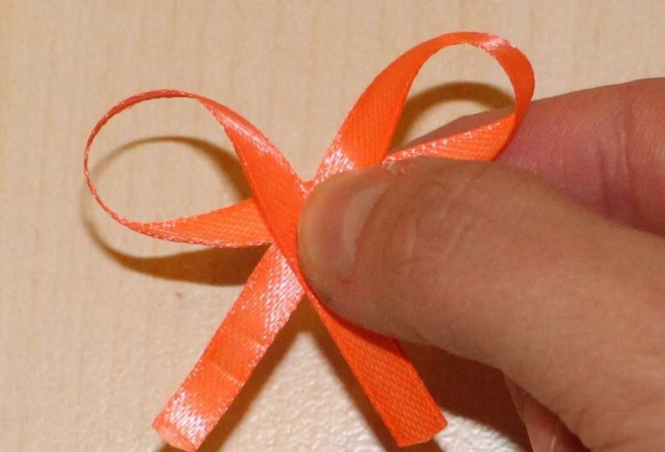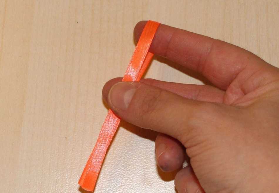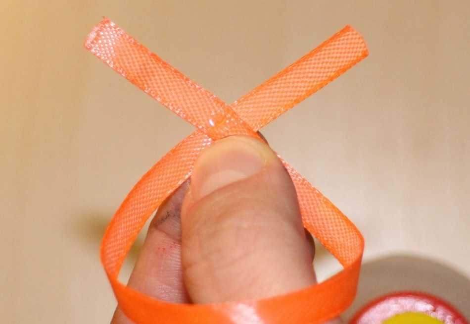 Удерживая ленту посередине, нужно ее согнуть так, как на фотографии.