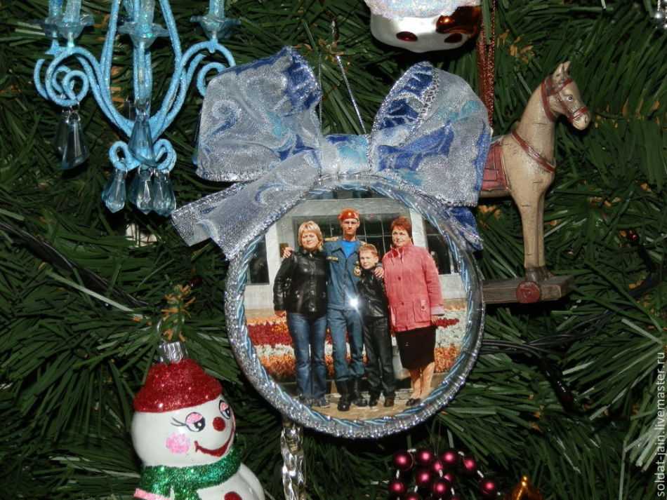 Новогодний шар можно декорировать целым коллажом из фото![]()