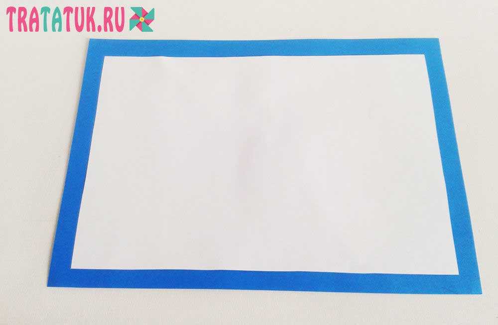 - Развернуть лист картона формата А4 как прямоугольник. Определить середину листа, поставив маленькую точку карандашом.