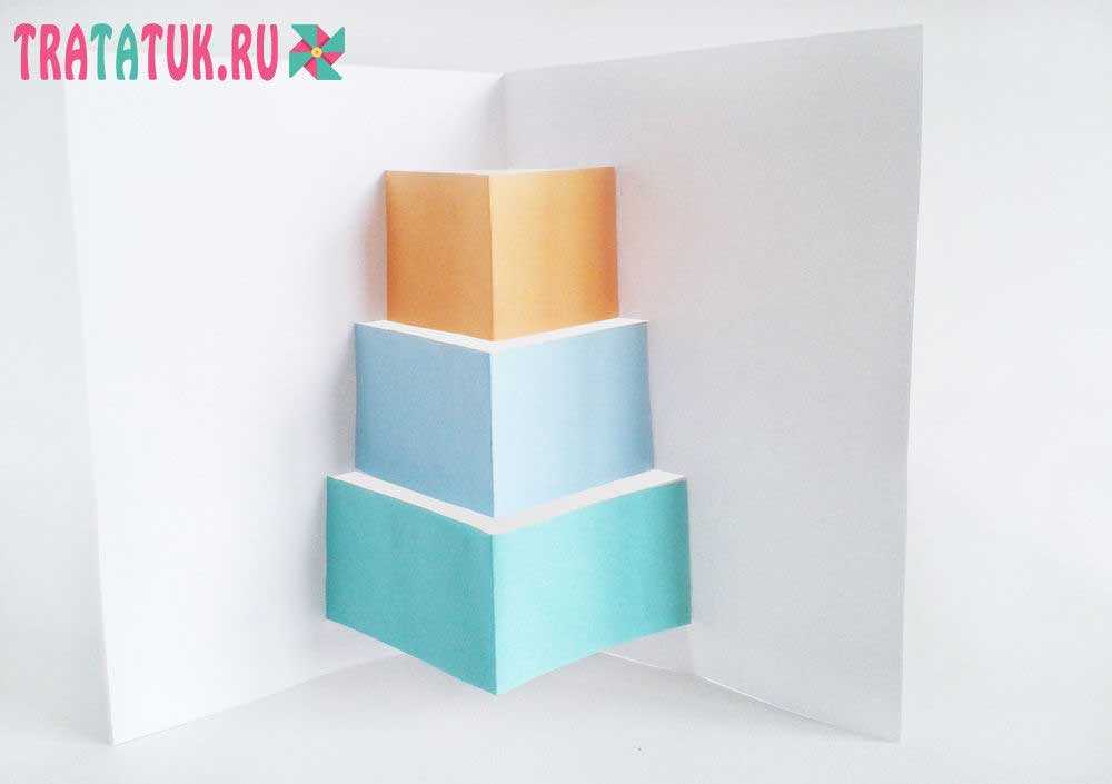 Вот такую не сложную открытку можно смастерить из цветной бумаги, всего за несколько минут.