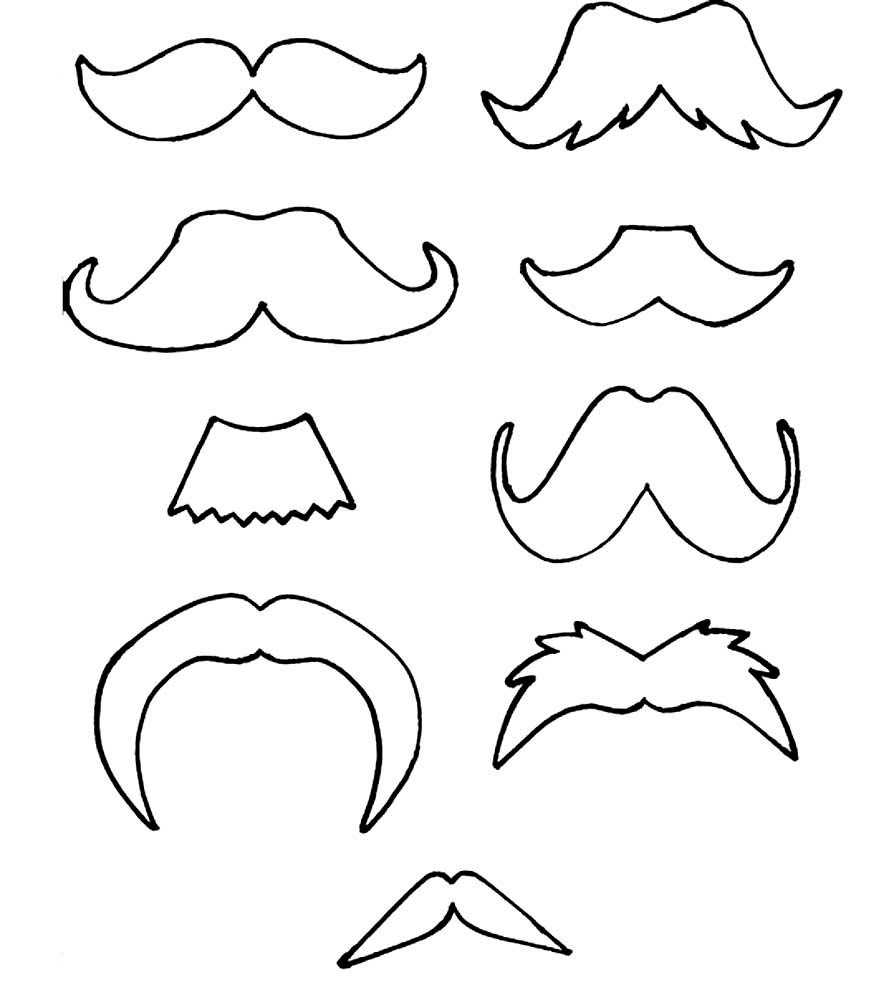 Забавный вариант открытки для настоящего джентльмена – это поздравительное полотно из белой бумаги, на котором просто приклеены фигурные черные усы. Такой сдержанный вариант выглядит достаточно прикольно и весело. Чтобы сделать красивый макет усов можно использовать готовые шаблоны: