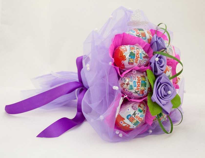 Если у вас есть маленькая родственница, ей будет приятно получить целую корзину ярких, красочных цветов с сюрпризом внутри. Как сделать сладкий букет для девочки своими руками расскажет пошаговая инструкция с детальным описанием.
