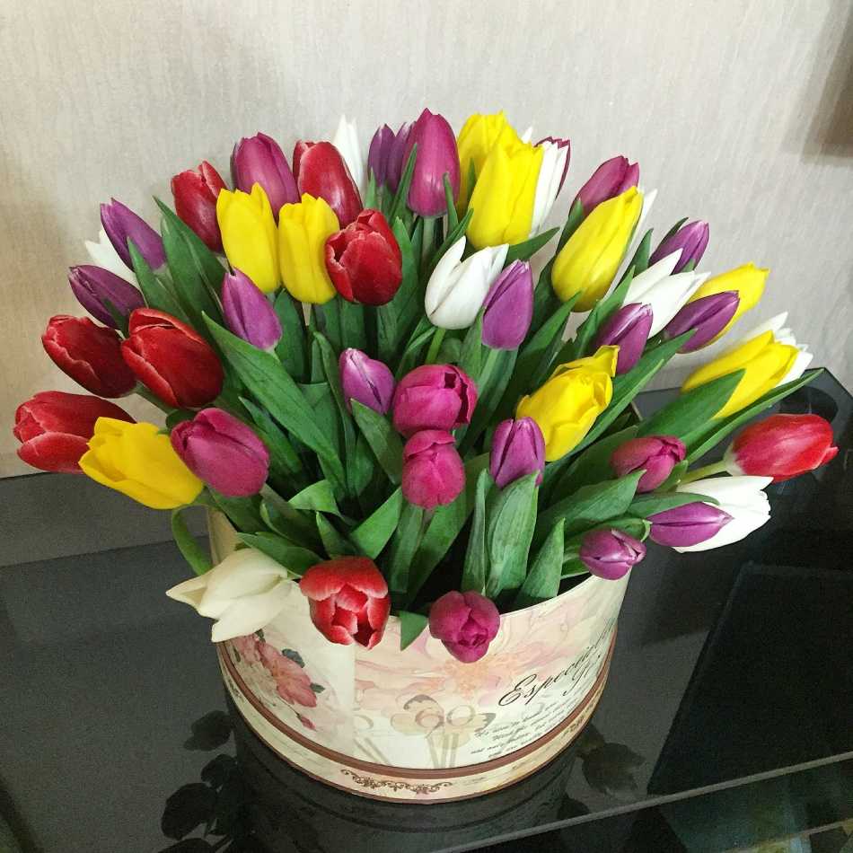 Как сделать модный букет цветов в коробке из тюльпанов своими руками: фото, мастер-класс