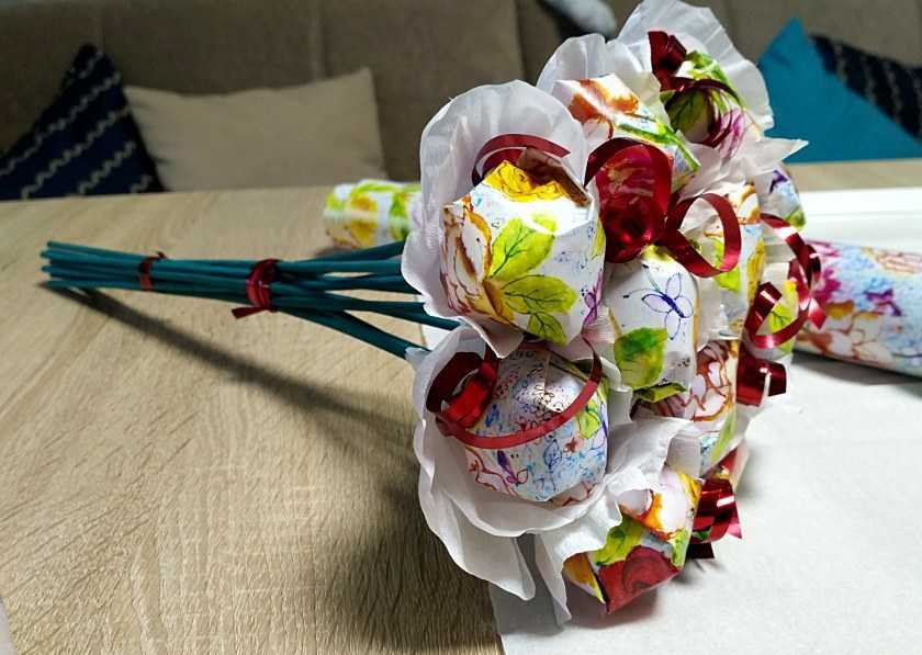 Букет тюльпанов из гофрированной бумаги с конфетами