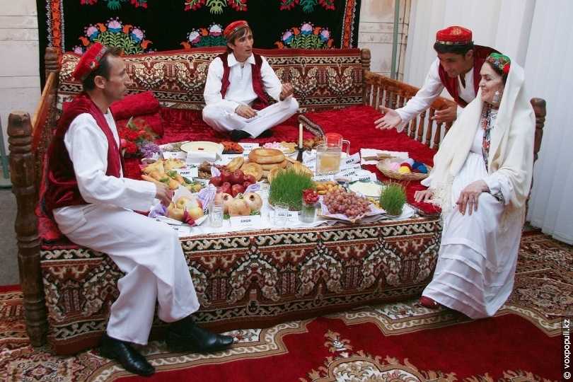 В Таджикистане друг друг приветствуют словами «Навруз мобарак бод», а на столе обязательно должны стоять блюда, название которых начинается на «с»: суманак, сирке, сэмени, сабзи и другие.