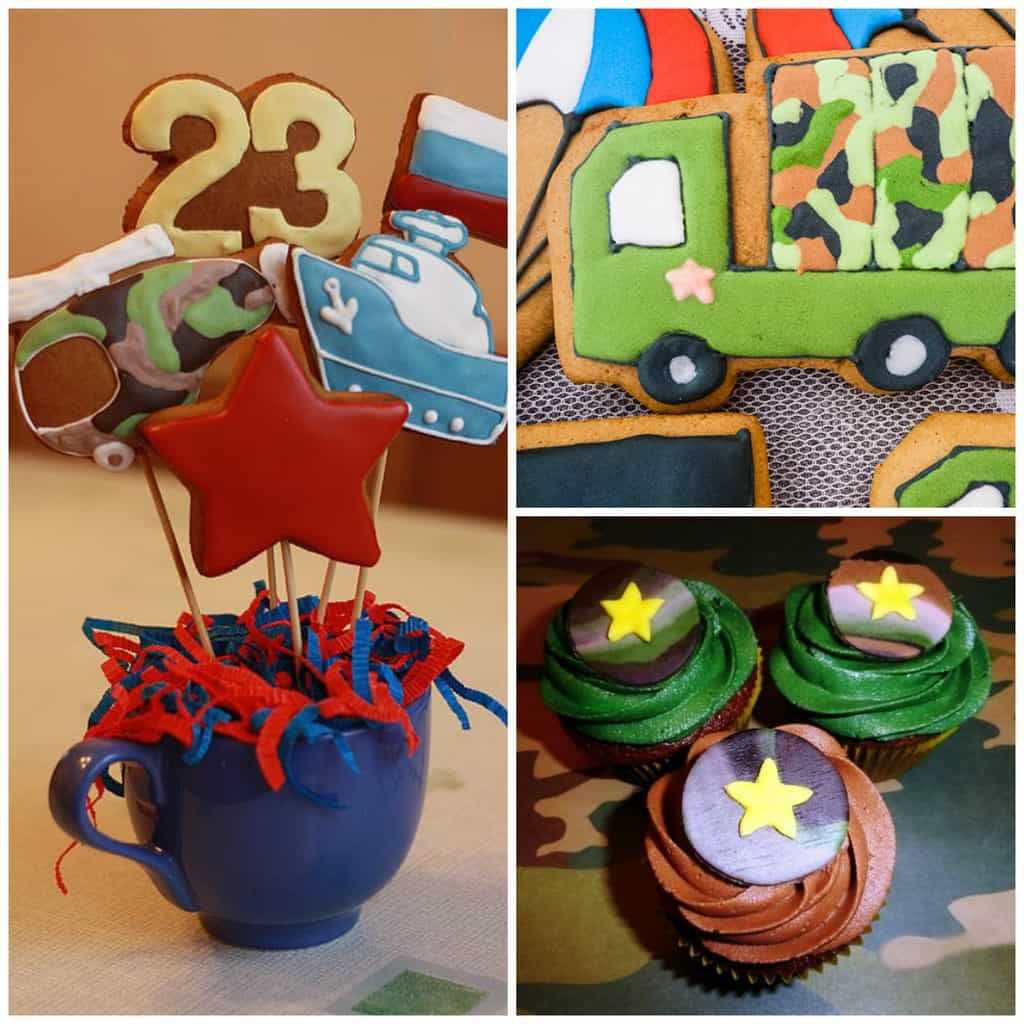Сладкие композиции отлично подойдут для украшения праздничного стола в детском саду и младших классах. Также повсюду можно разложить сделанные своими руками фигурки танков, автомобилей или самолетов. Такие украшения могут быть красивыми и очень вкусными!