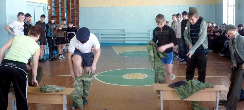 Веселый и активный тематический конкурс на 23 февраля — надевание военной одежды на скорость