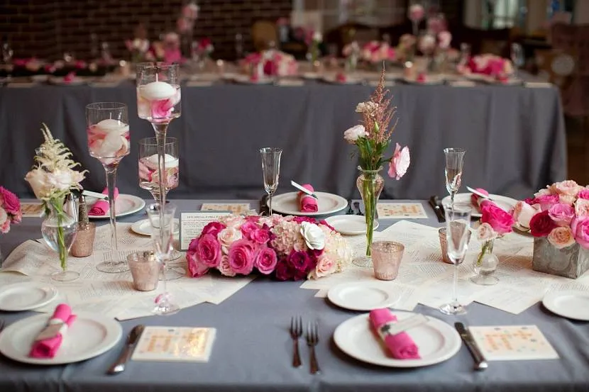 Столы для гостей на свадьбе с розовым декоромИсточник magic-decor.ru