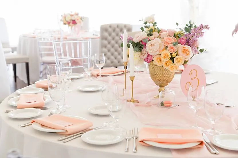 Свадебный столик для гостей в нежных пастельных тонахИсточник weddywood.ru