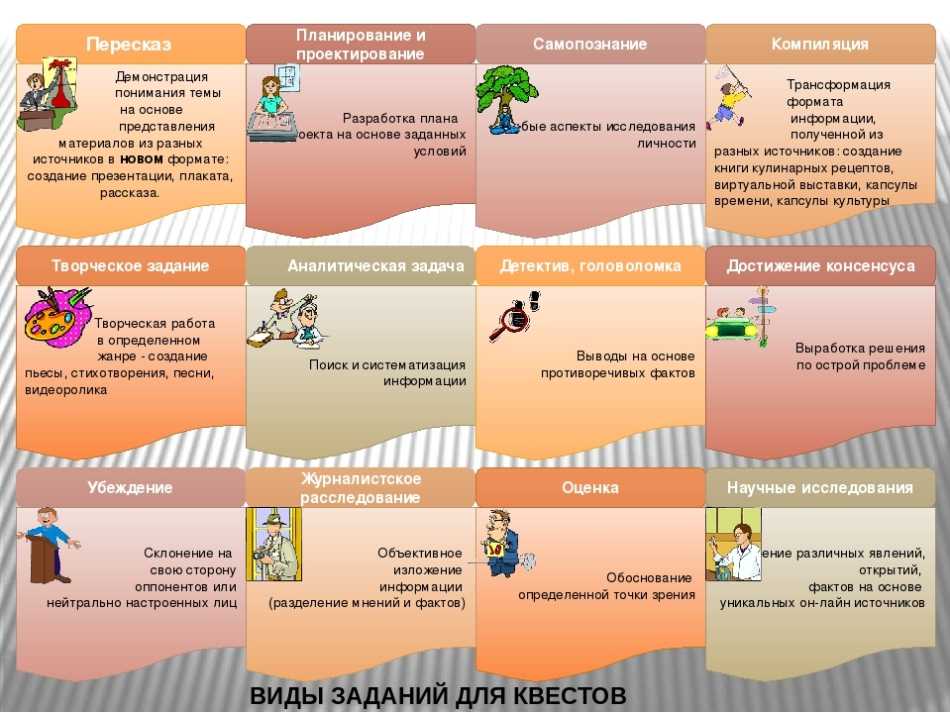 Квест (от англ. «quest» – поиск, приключение) – это интеллектуальное игровое развлечение, в ходе которого участники должны преодолеть ряд этапов-заданий для достижения ключевой цели. Цепь загадок, заданий, головоломок располагается на определённой территории, причём это может быть как одна комната, квартира или дом, так и двор, парк. Если квест проходит в детском саду или школе, то локацией становится, соответственно, групповая комната, класс, актовый зал, коридоры и пр.