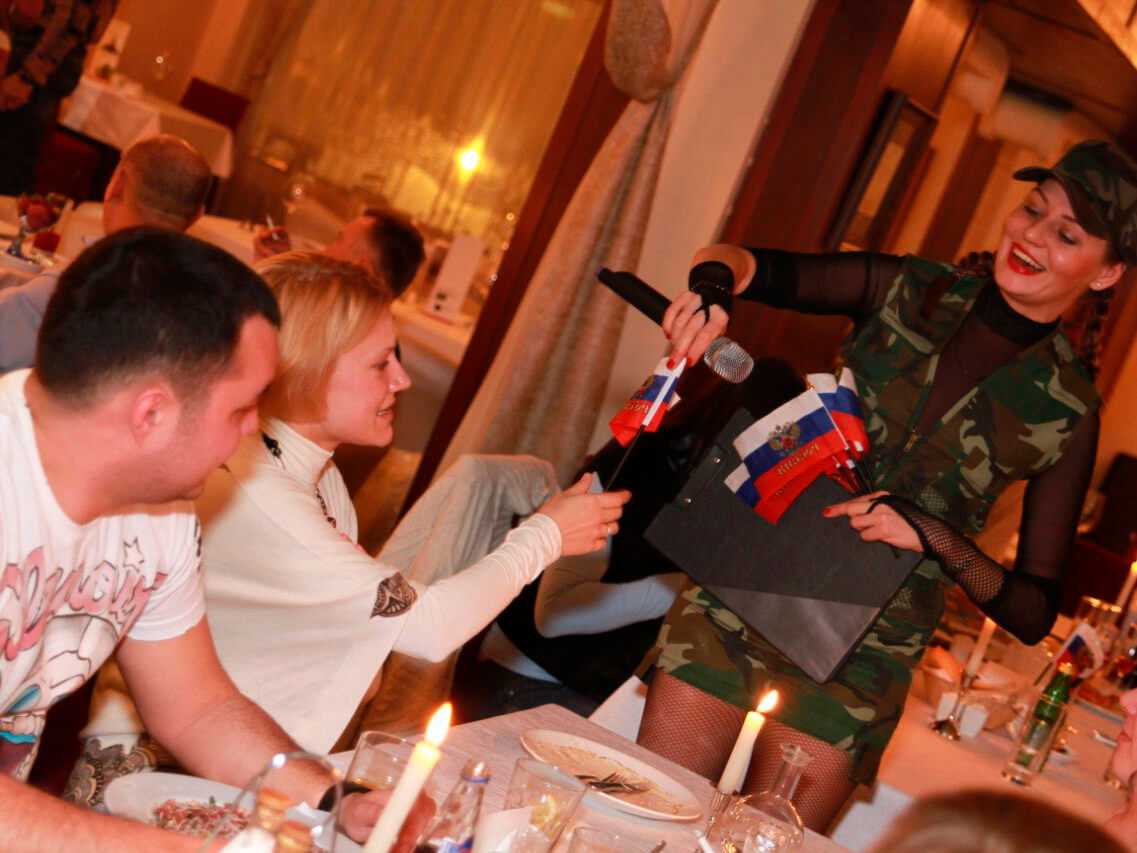 Если в коллективе царит непринужденная, дружеская обстановка, на корпоратив по случаю 23 февраля можно добавить шуточные конкурсы. Коллеги смогут от души повеселиться и получить заряд хорошего настроения.