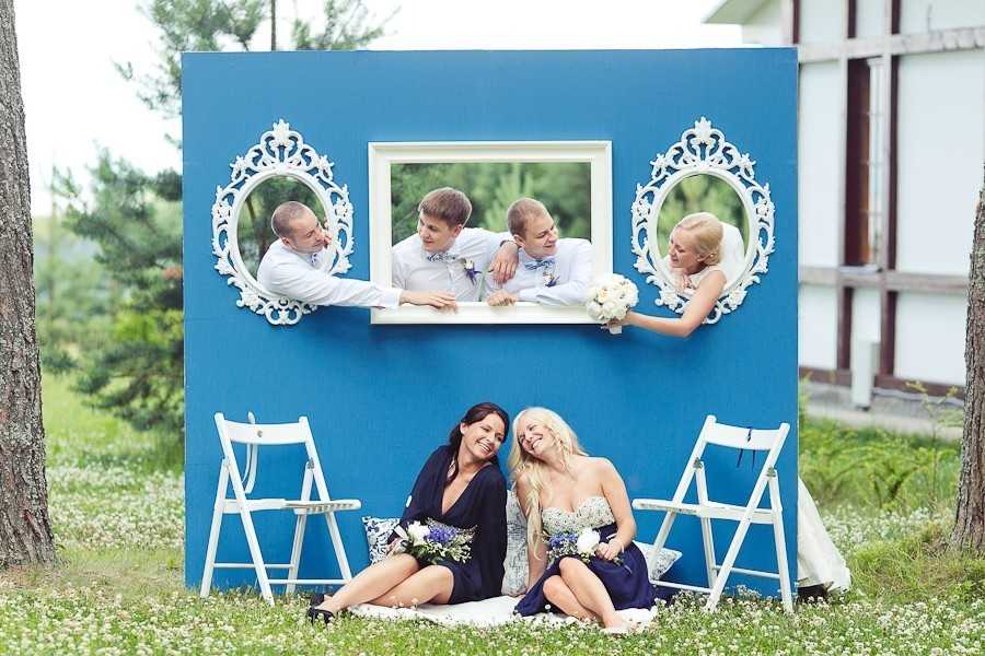 Самое распространенное, но от того не менее интересное развлечение — фотозона. Фотозона может стать как частью зоны Welcome, так и отдельным элементом программы праздничного ужина. Здесь гости смогут сделать веселые снимки в самый разгар торжества или более официальные, для семейных архивов. С развитием социальных сетей все большую популярность приобретают специальные хэштеги для свадьбы. Не забудь сделать табличку с придуманным для свадьбы хэштегом, чтобы уже после свадьбы рассмотреть фото-мозаику вечера. Особенно приятна будет возможность распечатать фотографии прямо на вечере: это может быть и просто фотобудка с возможностью распечатки или автомат для печати фото из Инстаграма. Идея фотозоны должна полностью соответствовать стилю и тематике свадьбы