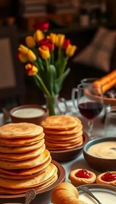 Блюда русской кухни – сердце любой вечеринки в русском стиле. Начните с закусок: соленья (огурцы, помидоры, капуста), маринованные грибы, холодец, сало. Обязательно подайте блины – символ солнца и тепла, как на Масленицу, где их пекут в каждом доме. Блины можно подавать с различными начинками: икра, сметана, варенье, мед.
