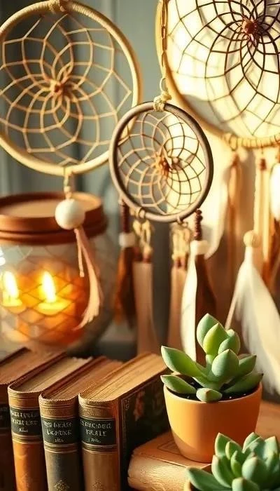 Ловцы снов и макраме: Ловцы снов – символ защиты и удачи, который идеально впишется в бохо-интерьер. Макраме – техника плетения из узлов, которая позволяет создавать уникальные настенные панно, подвесные кашпо и другие декоративные элементы. Используйте натуральные материалы, такие как хлопок, лен и джут, для создания макраме-изделий.
