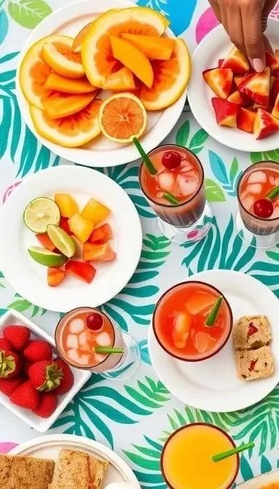 Предложите гостям легкие закуски, фрукты, салаты, мороженое и освежающие коктейли. Приготовьте напитки, которые не испортятся на солнце. Используйте яркие фрукты и ягоды для украшения блюд и напитков. Подумайте о тематических угощениях, которые соответствуют выбранной теме вечеринки. Не забудьте о достаточном количестве воды, чтобы гости не обезвоживались.